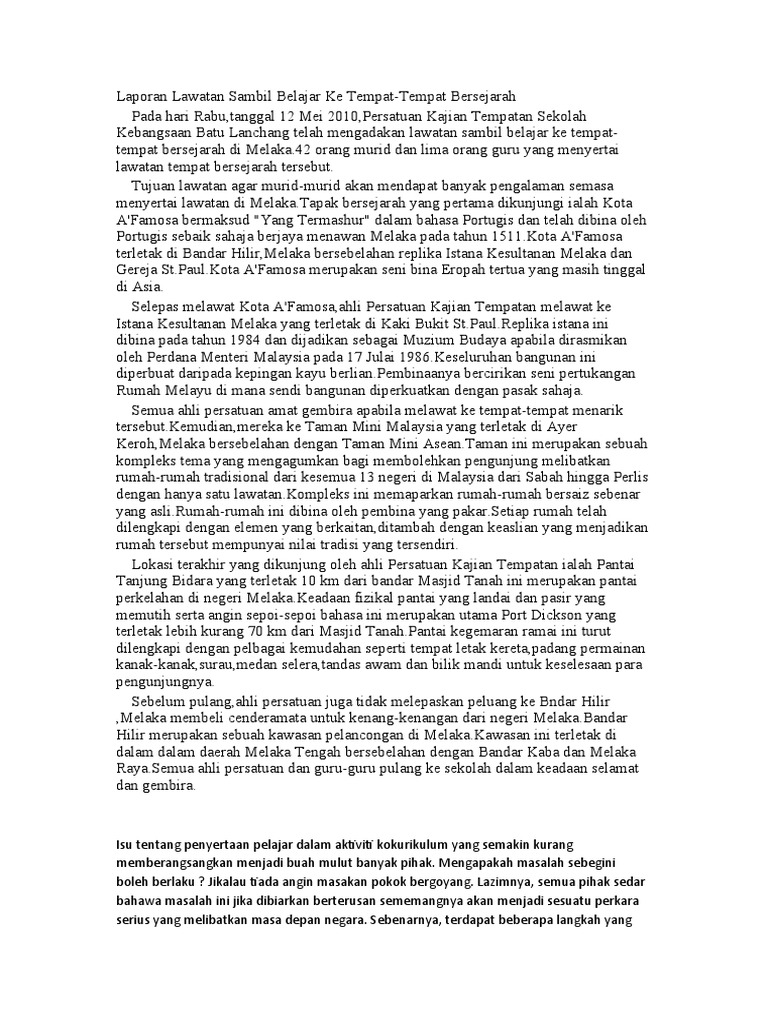 Laporan Lawatan Sambil Belajar Ke Tempat Pdf